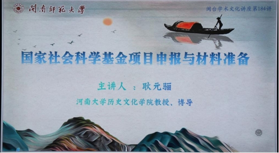 2023年12月25日上午,河南大学耿元骊教授闽南文化研究院之邀,在学校综合楼中区109为我校师生做主题为“国家社会科学基金项目申报与材料准备”的专题讲座。讲座由闽南文化研究院刘云院长主持。