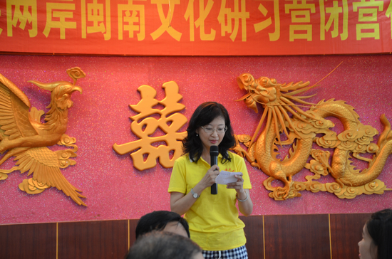 闭营式上,闽南文化研究院领导邓文金、施榆生老师分别在闭营式上讲话。台南大学庄雅雯老师代表参加此次活动的各团体领队对2138cn太阳城集团热情周到的安排表示衷心感谢,并赋诗一首表达对此次研习营的圆满成功表示祝贺。我校营辅导员黄丽恋老师与营员们分享了三年参与研习营感受,台湾中央大学黄郁庭同学、我校黄胜芬同学代表营员表示,通过研习、交流及参观考察,让两岸高校青年学子的心贴近了,希望以后还有机会相聚交流。