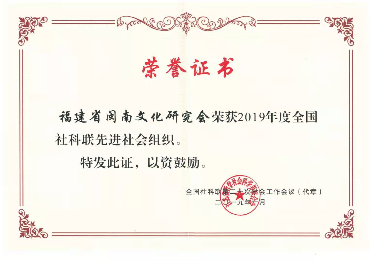 我校闽南文化研究院副院长、福建省闽南文化研究会秘书长刘云参加了会议并在会上发言,同时还代表福建省社科联领取荣誉证书。全国社科联第二十次学会工作会议肯定了福建省闽南文化研究会自2016年成立以来在闽南文化交流和研究等方面所做的努力与贡献。