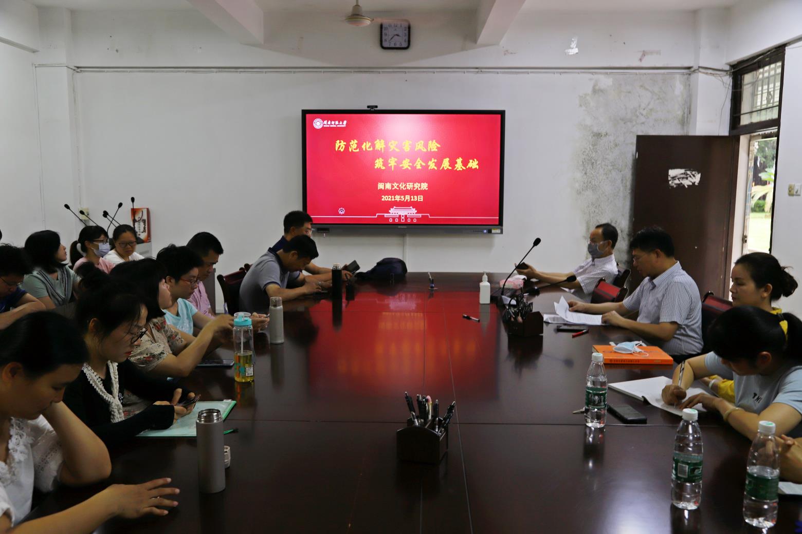 5月13日下午,闽南文化研究院以“防范化解灾害风险,筑牢安全发展基础”为主题,在综合楼中区109开展防灾减灾宣传活动。闽南文化研究院全体教职工参加此次活动,活动由闽南文化研究院副院长刘云主持。