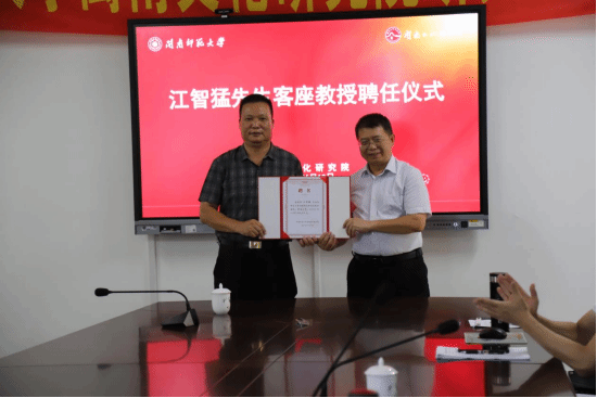 6月19日下午,闽南文化研究院在综中109教室举行江智猛先生客座教授聘任仪式。郑玉玲副院长主持仪式,刘云院长颁发聘书,研究院全体师生参加。