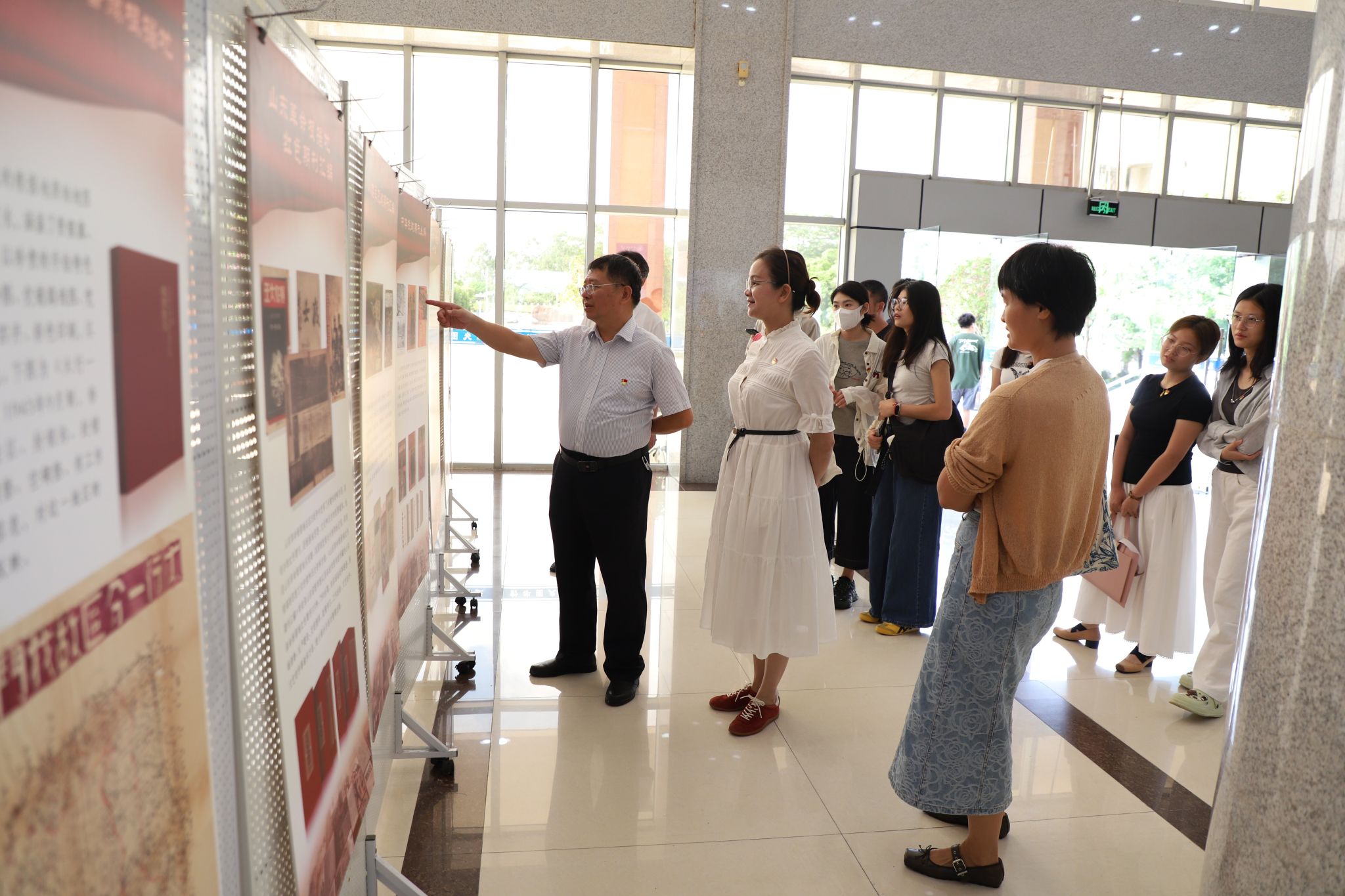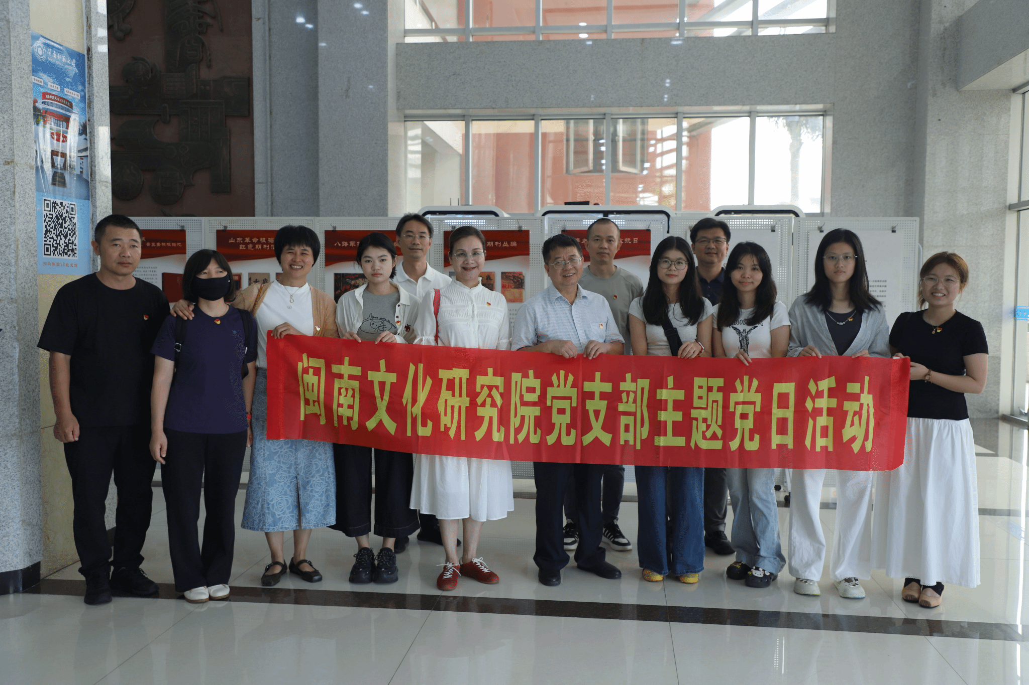 9月25日上午,闽南文化研究院党支部在校逸夫图书馆大厅组织开展纪念抗战胜利 80 周年主题党日活动,全体党员在党支部书记刘云的带领下,参观由学校机关党委与图书馆联合承办的国家图书馆“抗战文献整理成果展”。