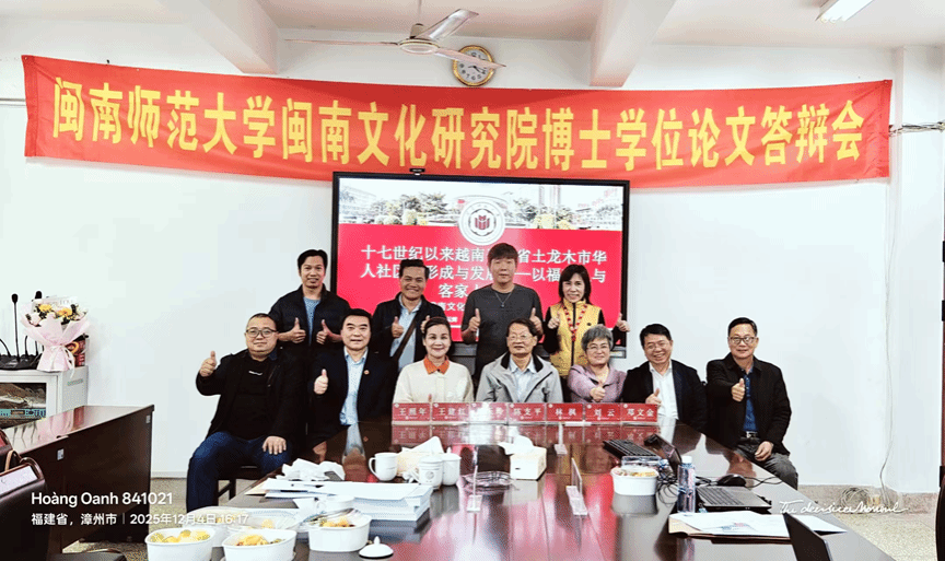 近日,闽南文化研究院首届博士留学生学位论文答辩会在综合楼中区 109 会议室成功举办。来自越南的阮氏黄莺(NGUYEN THI HOANG OANH)、梁云辉(LUONG VAN HUY)、潘世英(PHAN THE ANH)、黄进勇(HOANG TIEN DUNG)四位博士留学生顺利通过答辩,答辩委员会全票同意授予其博士学位。此次答辩的圆满成功,标志着研究院在高层次国际化人才培养领域实现突破性进展,为研究院和学校国际化办学事业写下重要篇章。