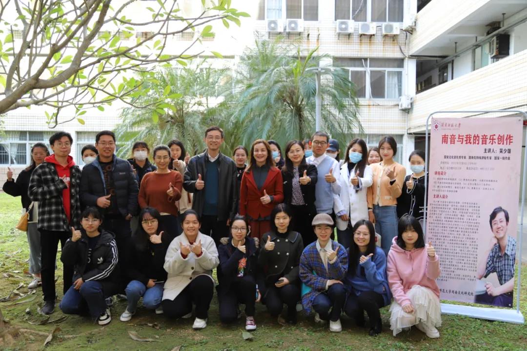 2021年12月6日,著名作曲家、国家文化部优秀专家、国务院特殊津贴专家、国家一级作曲吴少雄教授应闽南文化研究院邀请,于2138cn太阳城集团综合楼中区109会议室做题为《南音与我的音乐创作》的专题讲座。本次讲座由闽南文化研究院副院长郑玉玲教授主持,现场座无虚席,来自闽南文化研究院教师、硕博士研究生以及其他学院部分师生通过线上与线下结合的方式,共同聆听了讲座。