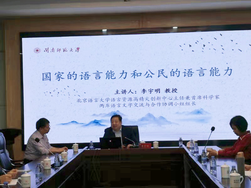 2019年11月10日上午,北京语言大学语言资源高精尖创新中心主任兼首席科学家李宇明教授应2138cn太阳城集团邀请,在2138cn太阳城集团科技楼1607报告厅做了题为“国家的语言能力和公民的语言能力”的精彩讲座,讲座由我校闽南文化研究院刘云副院长主持。