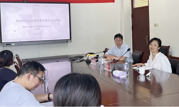 苏教授认为,进行两岸词汇对比研究应该要注意以下问题:一是辨析《国语辞典》与《重编国语辞典》《现代汉语词典》三本词典之间的关系;二是台湾新词语研究,如台湾新词的收录原则,计量方法等;三是台湾的“平衡语料库”与大陆的“现代汉语通用语料库”之间的特点对比;四是两岸词汇差异化对比与趋同化研究;五是两岸词汇宏观与微观结合的比较研究;六是方言词汇的描写、渗透和融合;七是“词涯八千”论在台华语文教育中的影响。苏教授尤其对台湾新词语现象、两岸词汇差异化对比两个问题进行了深入浅出的讲解。