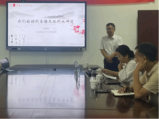 11月14日下午,闽南文化研究院迎来了一场精彩的学术盛宴。北京师范大学张维佳教授应邀来院,在学校综合楼中区109会议室,做了一场题为《我们的时代与语文现代化研究》的学术讲座。我院部分师生现场聆听了本次讲座。我院吴晓芳教授主持讲座。