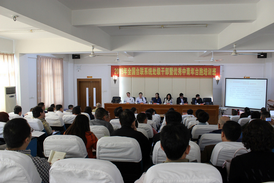 全国台联台胞部部长杨骅首先致辞,指出:当前,两岸关系继续沿着和平发展道路不断深化。在坚持“九二共识”的共同政治基础上,两岸双方继续增进互信,保持良性互动。此次培训是适应两岸关系和平发展的迫切需要,保证台联事业后继有人的重要举措。近二十年来,我们一直都坚持举办此类培训班,成效显著,达到预期目的,凡参加培训学员都感觉受益非浅,做到学以致用,收获较大。