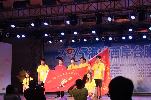 接着夏令营在我校龙文馆举行了隆重的授营旗仪式。参加授营旗仪式的领导有中共福建省委统战部副部长陈飞,我校党委书记林晓峰,福建省台联会长江尔雄,漳州市人民政府副市长黄庆辉,福建省政协港澳台侨和外事委副主任卢德昌,福建省人民政府侨务办公室副主任刘良辉,民革福建省委秘书长董良瀚,漳州市人民政府副市长兰万安,我校副校长萧庆伟,福建省台联副会长梁志强以及省市有关部门领导,2015海峡西岸台胞青年夏令营全体营员、我校师生代表200余人。中共福建省委统战部副部长陈飞、漳州市副市长黄庆辉发表了热情洋溢的致辞,夏令营营员代表林界宇同学发表感言。福建省人民政府侨务办公室副主任刘良辉、福建省政协港澳台侨和外事委副主任卢德昌代表主办单位分别向夏令营巴西营员团、台湾营员团授营旗。授营旗仪式由我校副校长萧庆伟主持。