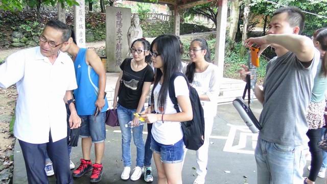2014年6月22日下午,我院“优秀闽南文化人才培养计划”改革试点班选修《闽南民间文学》课程的学生,在任课教师李弢,以及闽南文化研究院钟建华老师的带领下,到白云岩进行朱熹民间传说考察。