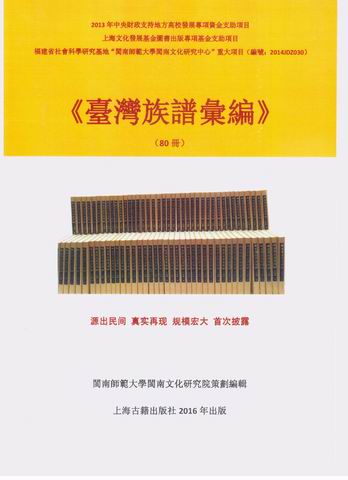 《台湾族谱汇编》共八十册,收进台湾地区的民间族谱计二百余种,绝大部分修纂于清代和民国年间。选编的主要标准是依据目前台湾人口数量的姓氏排名,原则上以排名前三十 的姓氏作为收集整理对象,再根据某些姓氏如连、辜等在台湾社会的重要影响程度,适当补入。