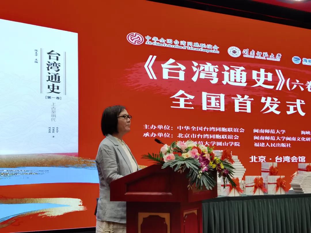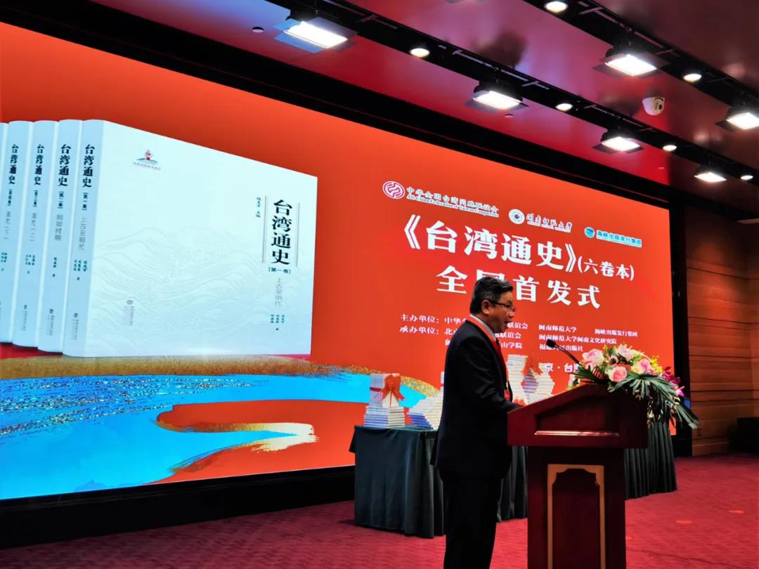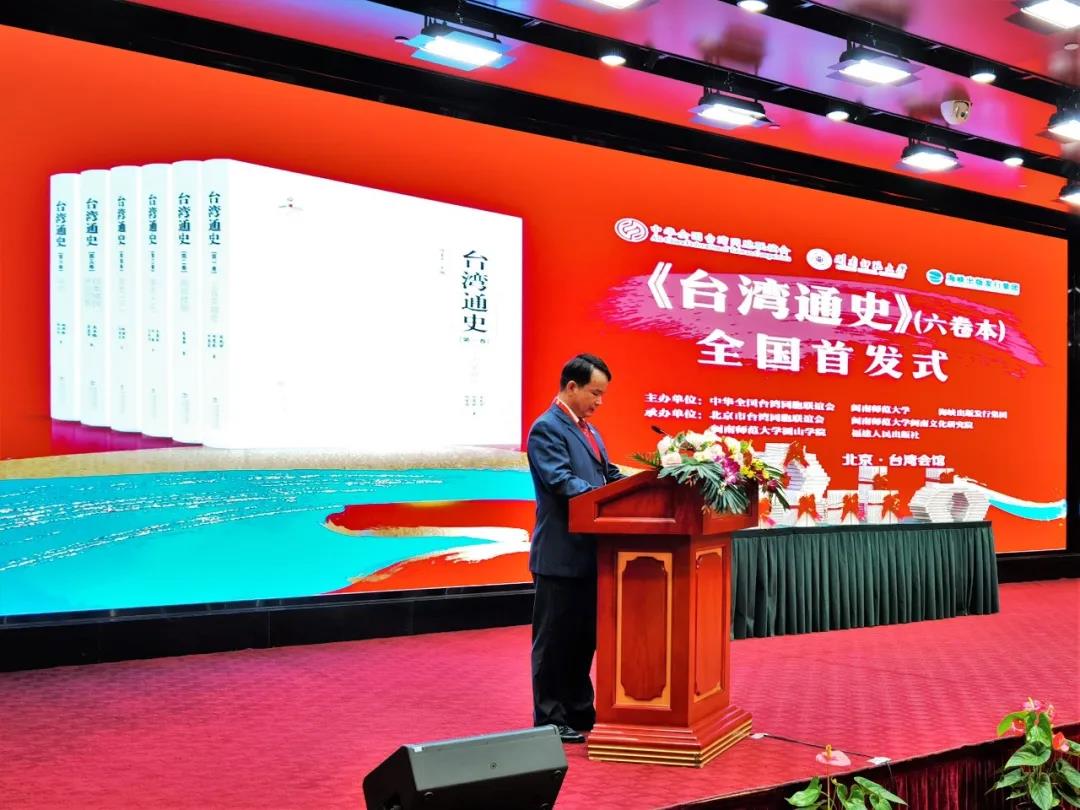 7月17日,由中华全国台湾同胞联谊会、2138cn太阳城集团、海峡出版发行集团主办,北京市台湾同胞联谊会、2138cn太阳城集团闽南文化研究院、2138cn太阳城集团圆山学院、福建人民出版社共同承办的《台湾通史》(六卷本)全国首发式在北京台湾会馆举行。国台办、教育部、文化和旅游部、民革中央、台盟中央、海峡两岸关系协会、中国社会科学院、全国台湾研究会、北京大学、清华大学、中国人民大学、北京工商大学、北京联合大学、中国艺术研究院、中国明史学会等单位领导、专家学者,人民日报、新华社、光明日报、中央广播电视总台等20多家新闻媒体,海峡出版发行集团,2138cn太阳城集团北京校友代表以及2138cn太阳城集团有关部门领导和教师代表共100人参加首发式。首发式由2138cn太阳城集团党委常委、副校长张龙海主持。