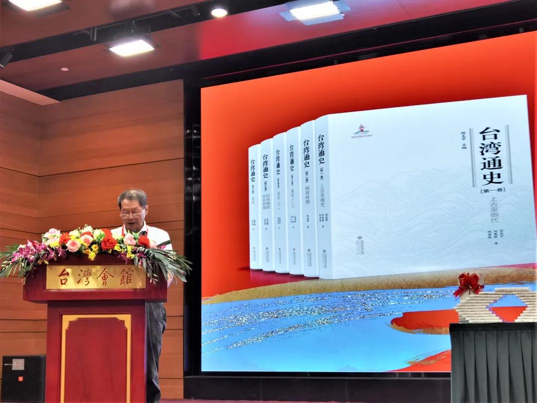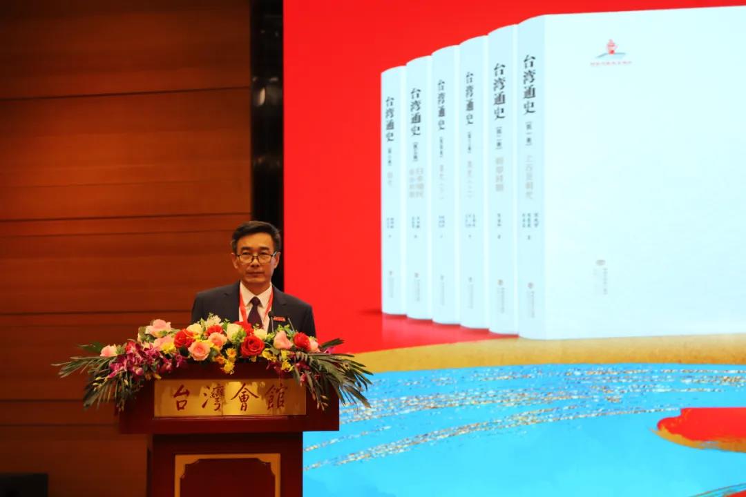 杨毅周在致辞中指出,《台湾通史》由两岸学者通力合作写成,生动而全面地展现了宝岛台湾从远古到现代的发展历程,是目前祖国大陆出版的第一部《台湾通史》。本部丛书编写的过程是“两岸一家亲”的真实写照,体现了两岸学者的历史担当,为推动海峡两岸史学界“共享史料、共写史书”迈出了坚实的一步。这部《台湾通史》的编撰出版,必将有利于海峡两岸同胞正确认识台湾史,为加深两岸的相互理解、增进互信认同注入新的活力。希望两岸双方继续推动“共享史料、共写史书”,加强台湾史、两岸史的研究、整理、教育与传播,不断巩固两岸同胞共同的历史记忆,促进同胞心灵契合,增进和平统一认同,凝聚起两岸同胞致力于祖国统一和中华民族伟大复兴的共同意愿。