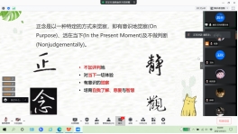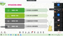 之后,康老师从学业规划、人际交往、恋爱婚姻三个角度,对研究生生活中可能遇到的心理问题进行了分析,指出学业规划中要学会正确地评估自身、人际交往中要懂得爱与尊重、恋爱婚姻中保持积极健康的心态。随后,康老师向同学们分享了心理调试的小技巧,如利用音频,引导同学们进行正念练习,帮助同学们调节自我心理。康老师特别说明正念的重要性,强调“正念”练习可以帮助同学们有效地提升专注力、减少压力、改善情绪状态等。