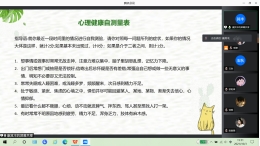 课程伊始,康老师向同学们简单介绍了健康和心理的概念,由此引入心理健康的含义和重要性。康老师指出“身心相连”,人的心理活动和人体的生理功能之间存在着内在的相关联系。如果处在良好的情绪状态,可以使生理功能处于最佳状态,相反,则会降低或破坏这种功能。通过康老师的细致讲解,同学们了解到常见的心理问题,缓解心理问题的途径等,以此提高同学们对心理健康的自知力,达到普及心理健康常识的目的。康老师还展示了心理健康自测量表,帮助同学们更直观地去了解认识自身的心理状况。