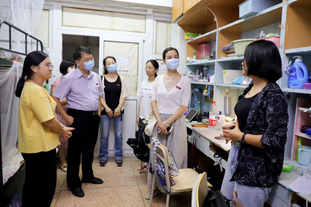 为了解新生面貌,帮助新生更快融入研究生生活,9月12号下午,闽南文化研究院副院长刘云、郑玉玲,研究生秘书尤熹,研究生班主任刘丽一行深入走访新生宿舍,看望、关心我院2020级硕、博士研究生。在走访中,院领导与新生们亲切交谈,详细询问新生们的入住情况和生活习惯,用笑容打消新生们的不安感和拘束感,传递研究院全体师生对新生们的温暖欢迎和殷切期望。