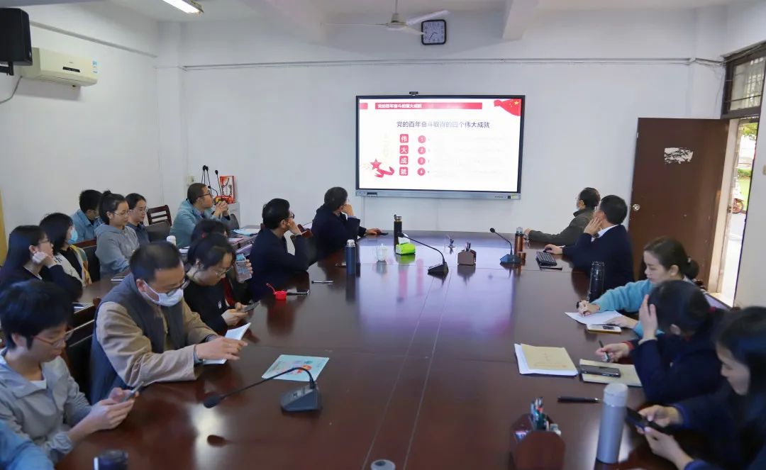 2021年11月8日至11日,中国共产党第十九届中央委员会第六次全体会议在北京举行。11月24日下午,闽南文化研究院党支部召开专题学习会,支部书记刘云带领全体党员集中学习党的十九届六中全会精神,支部党员围绕《中共中央关于党的百年奋斗重大成就和历史经验的决议》展开学习与交流。