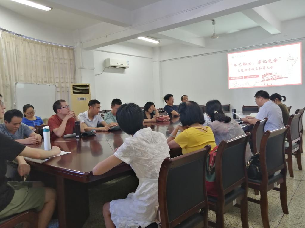 9月19日下午3时,闽南文化研究院在综合楼中区109召开“不忘初心,牢记使命”主题教育强化动员部署暨专题学习会。会议由我院副院长、党支部书记刘云主持,全体教职工、全体党员参加了会议。